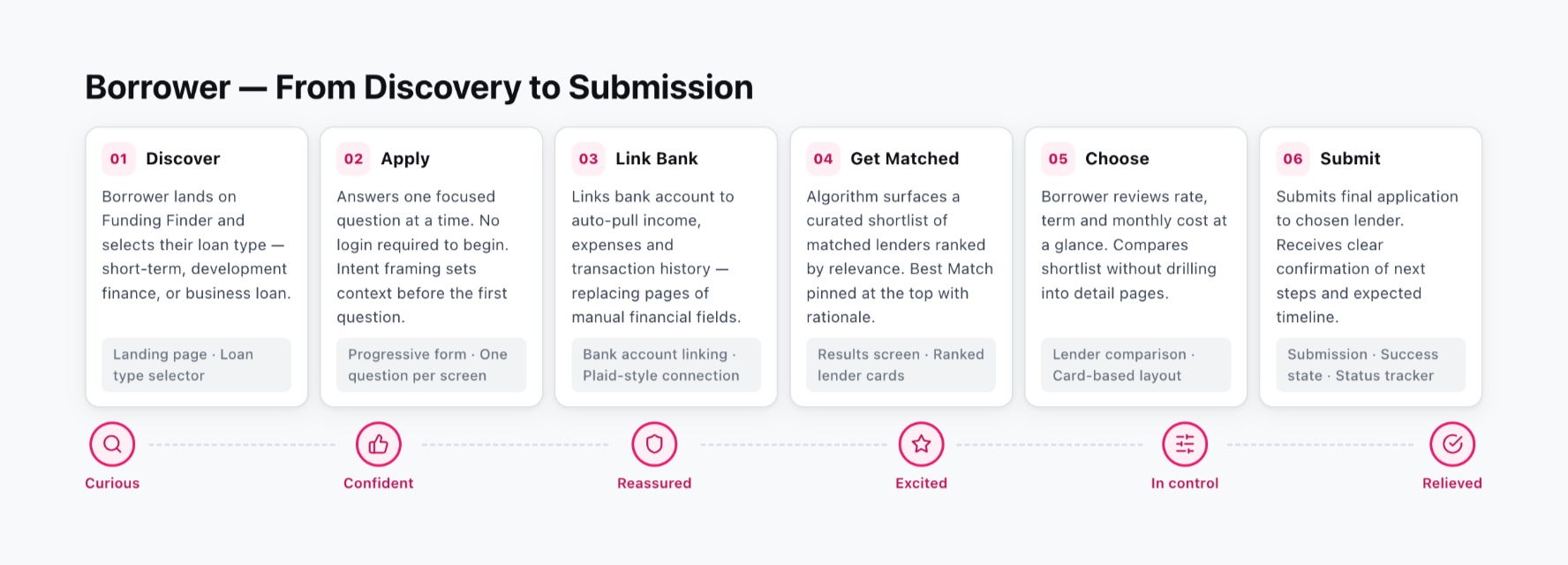 We aimed to reduce friction for borrowers, streamline coordination for brokers, and ensure lenders receive complete, well-matched submissions from the start.