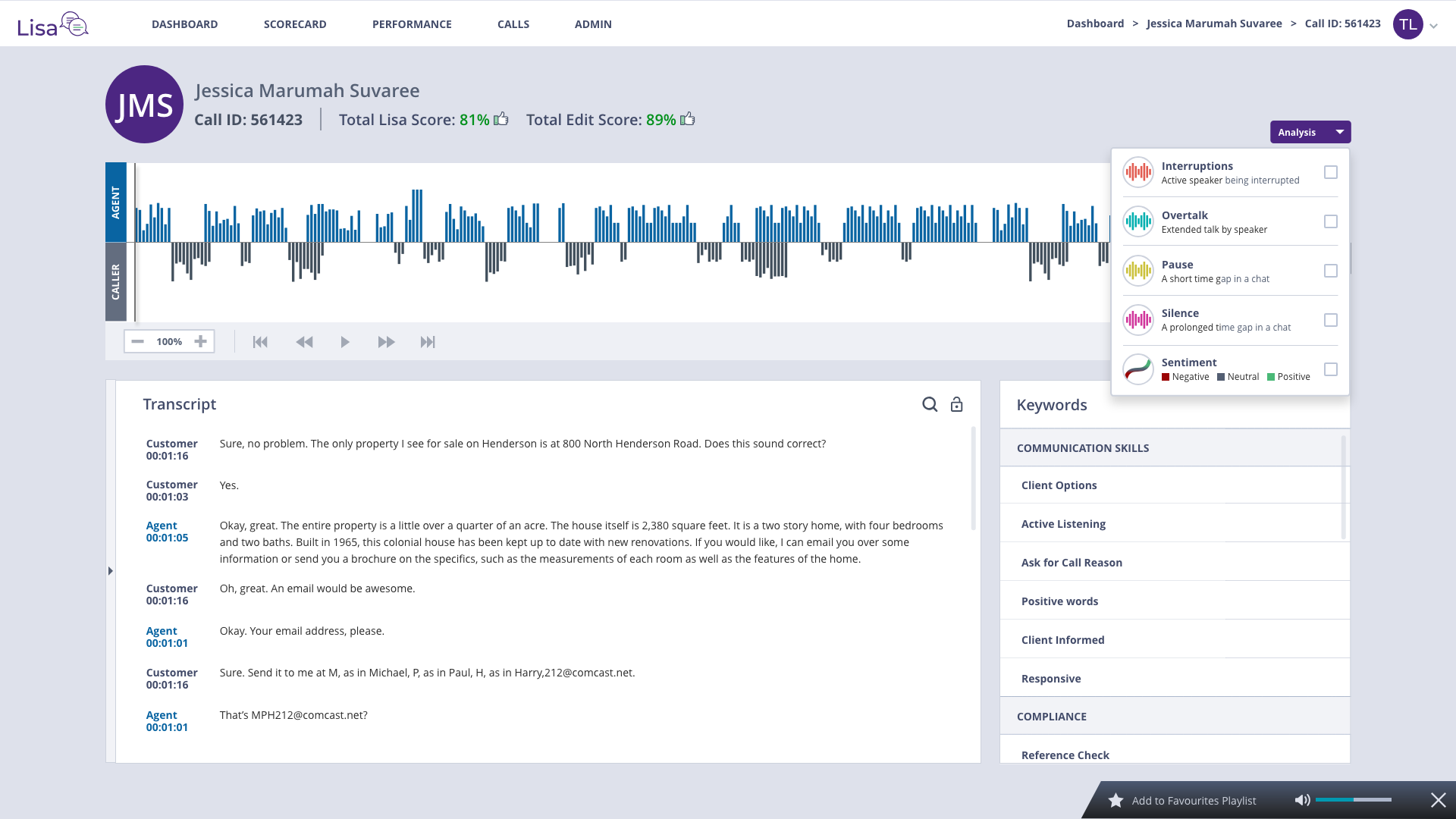 For businesses and users who want to automate compliance processes and optimise agent performance, Lisa is a transcribing business and intelligence tool that provides actionable insights, automated QA scoring and coaching opportunities.